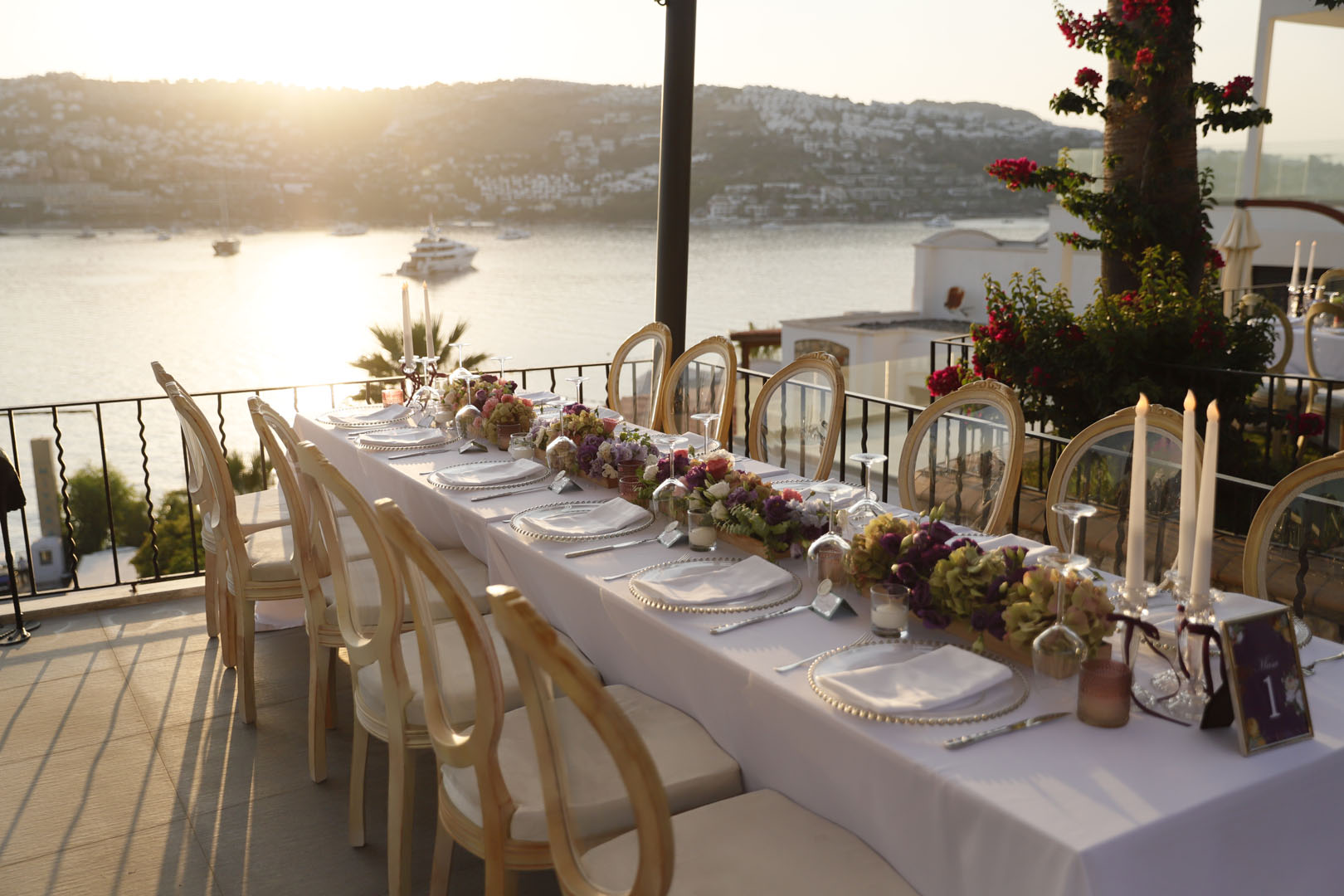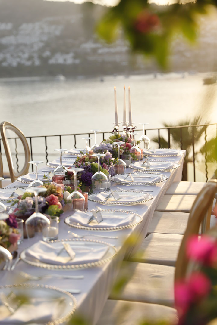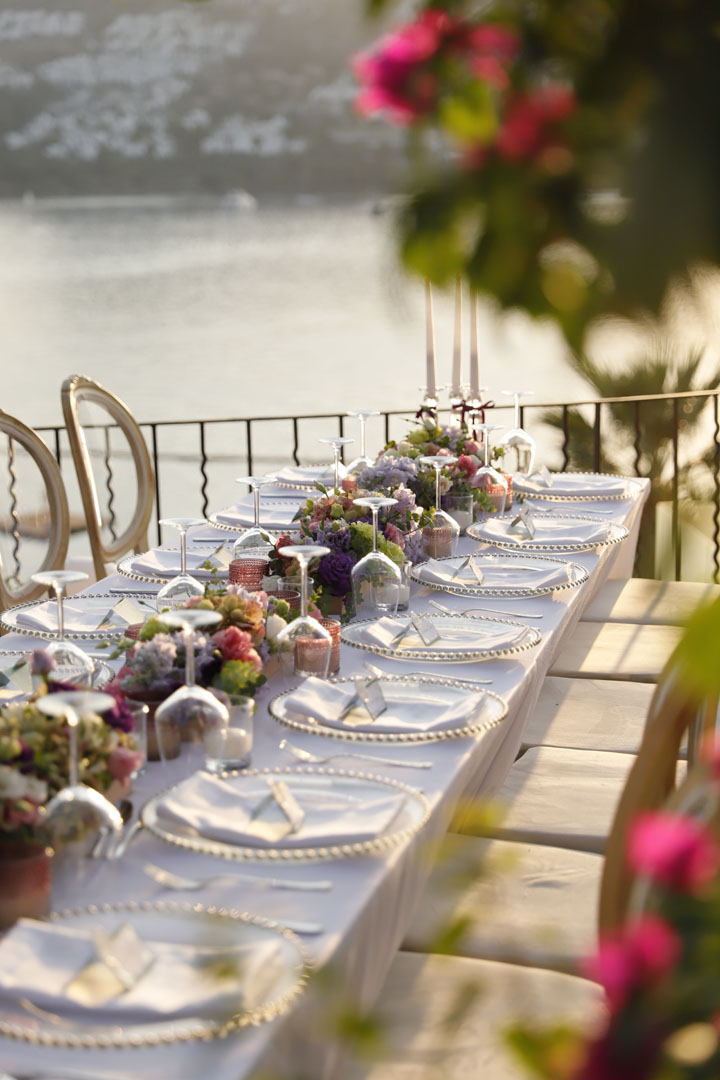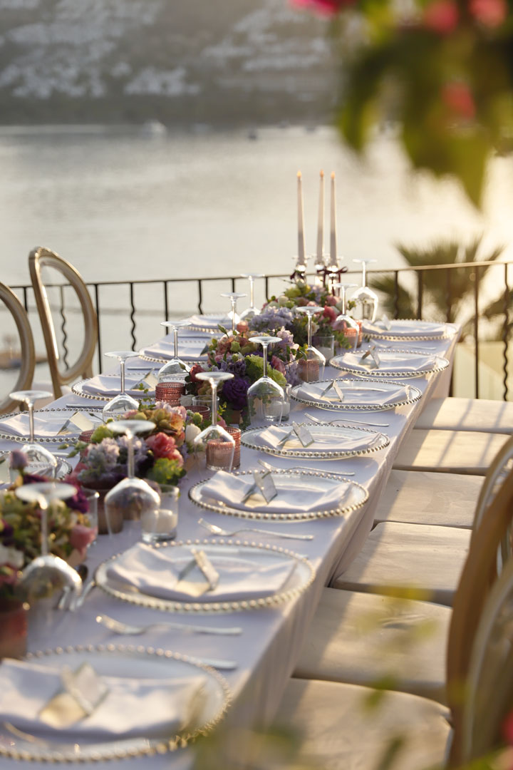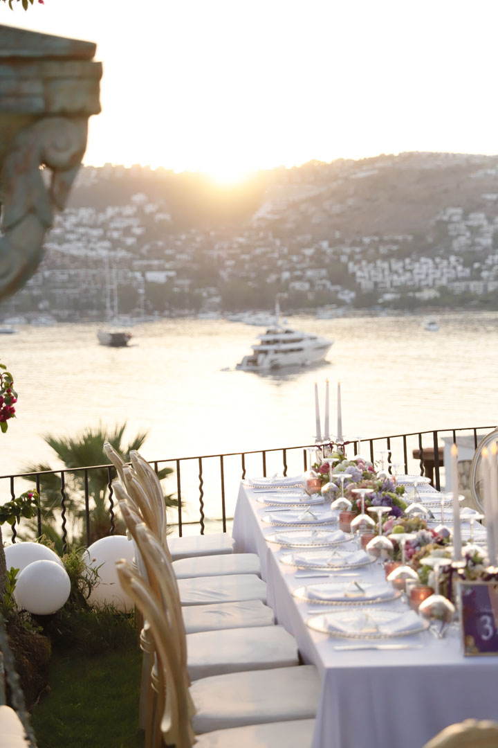 We bid farewell to a busy and beautiful summer season that swiftly passed. In the heart of summer, we curated a delightful gathering at the seaside home of our dear Seyhan Sapmaz in Gündoğan. Guests were welcomed by the richness of elegant details and a splendid palette featuring warm pinks, delicate ombres, regal purples, and charming whites. Eagerly anticipating sharing more memories from this beautiful day!